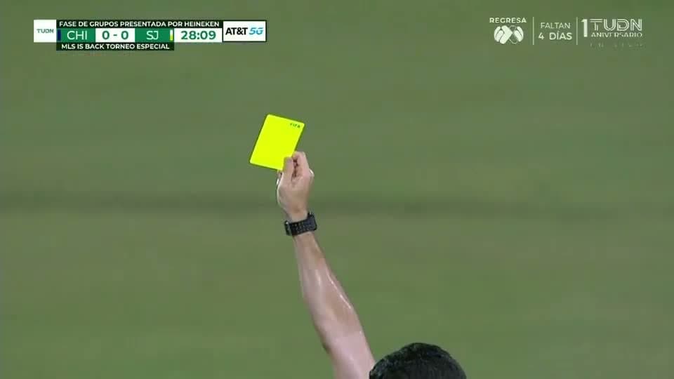Tarjeta amarilla. El árbitro amonesta a Boris Sekulic de Chicago Fire FC on July 19, 2020