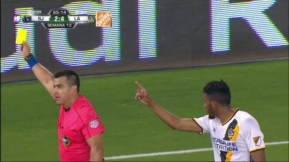 Tarjeta amarilla. El árbitro amonesta a Bradley Diallo de LA Galaxy