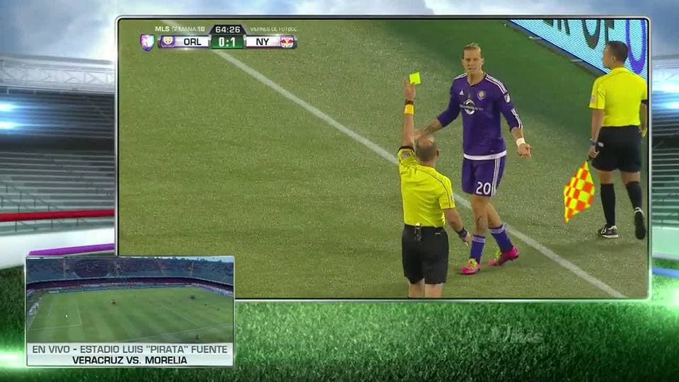 Tarjeta amarilla. El árbitro amonesta a Brek Shea de Orlando City SC