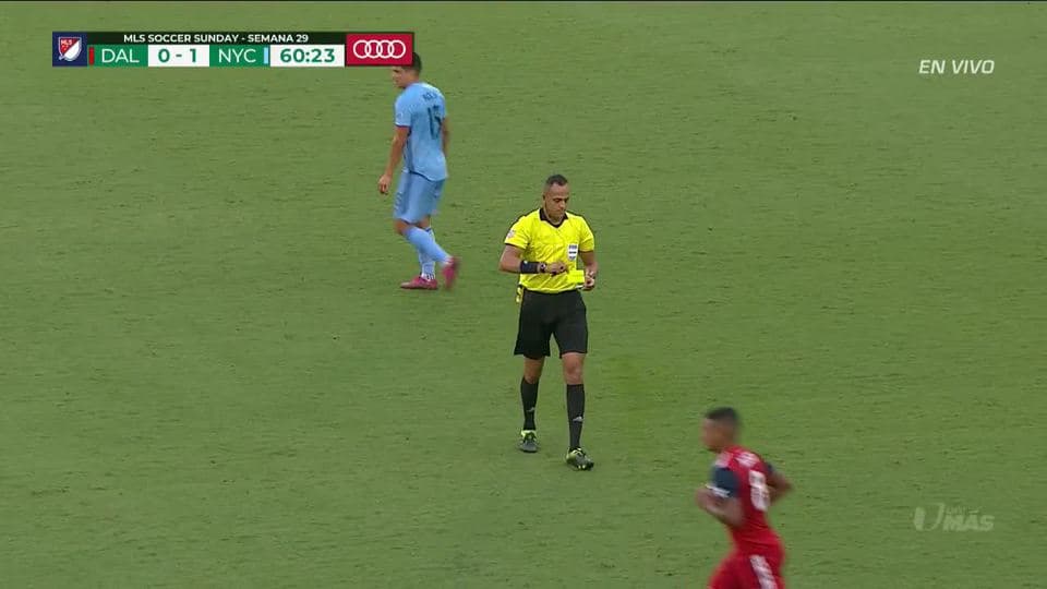 Tarjeta amarilla. El árbitro amonesta a Bryan Acosta de FC Dallas