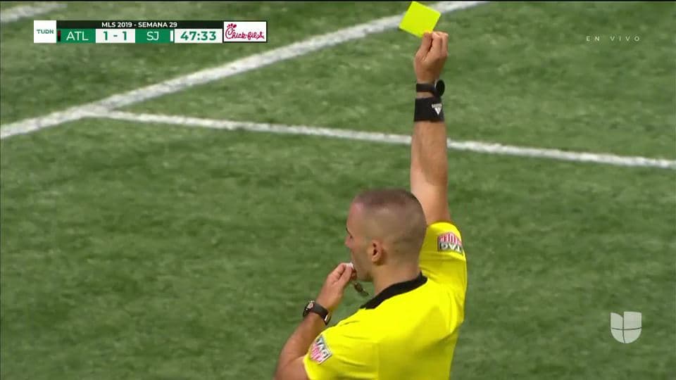 Tarjeta amarilla. El árbitro amonesta a Daniel Vega de San Jose Earthquakes