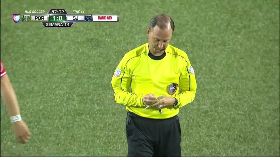 Tarjeta amarilla. El árbitro amonesta a Diego Chara de Portland Timbers