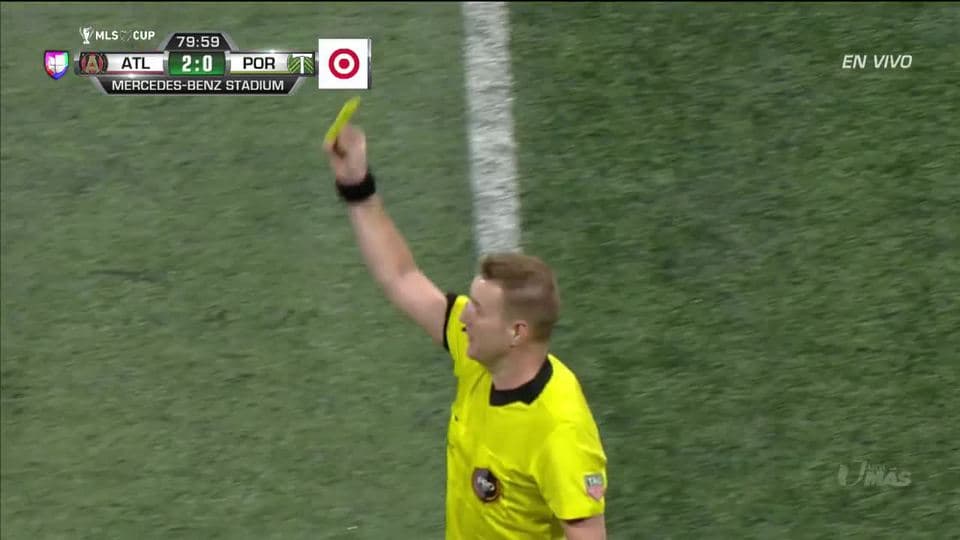 Tarjeta amarilla. El árbitro amonesta a Diego Chara de Portland Timbers on December 8, 2018