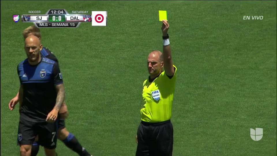 Tarjeta amarilla. El árbitro amonesta a Dominique Badji de FC Dallas