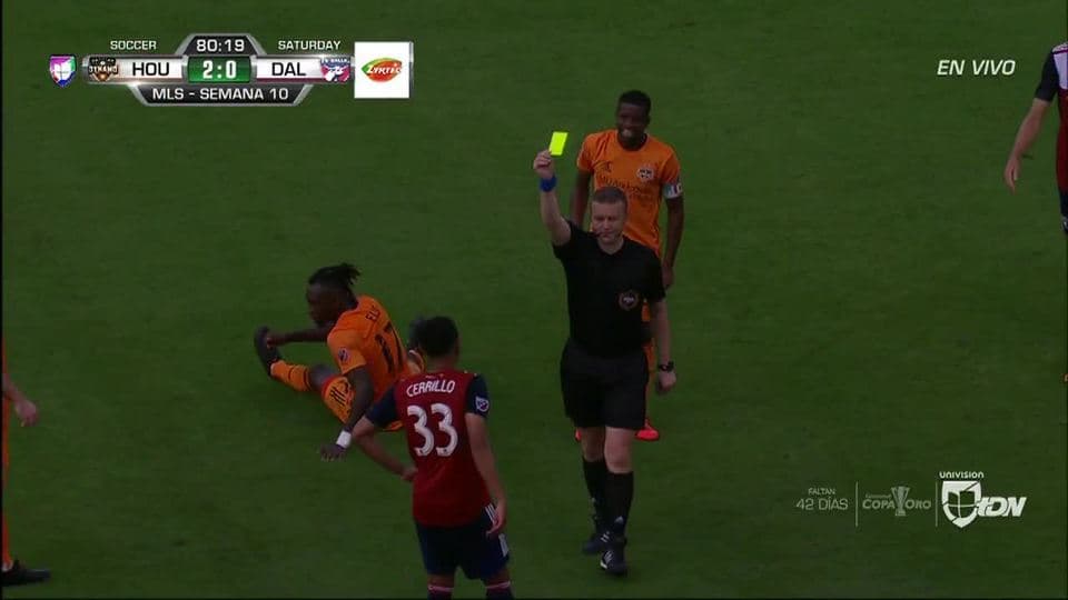 Tarjeta amarilla. El árbitro amonesta a Edwin Cerrillo de FC Dallas
