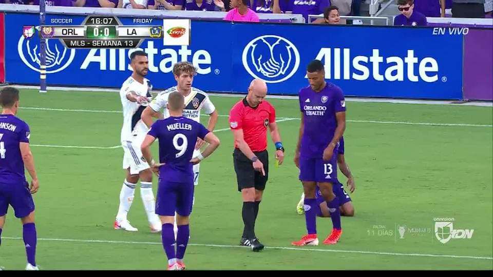 Tarjeta amarilla. El árbitro amonesta a Emil Cuello de LA Galaxy