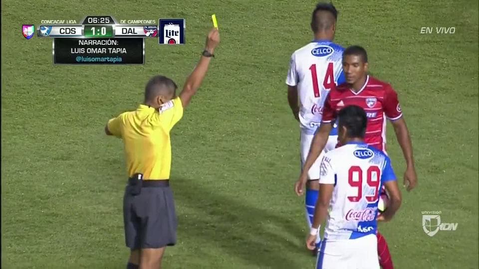 Tarjeta amarilla. El árbitro amonesta a Erwin Morales de Suchitepéquez