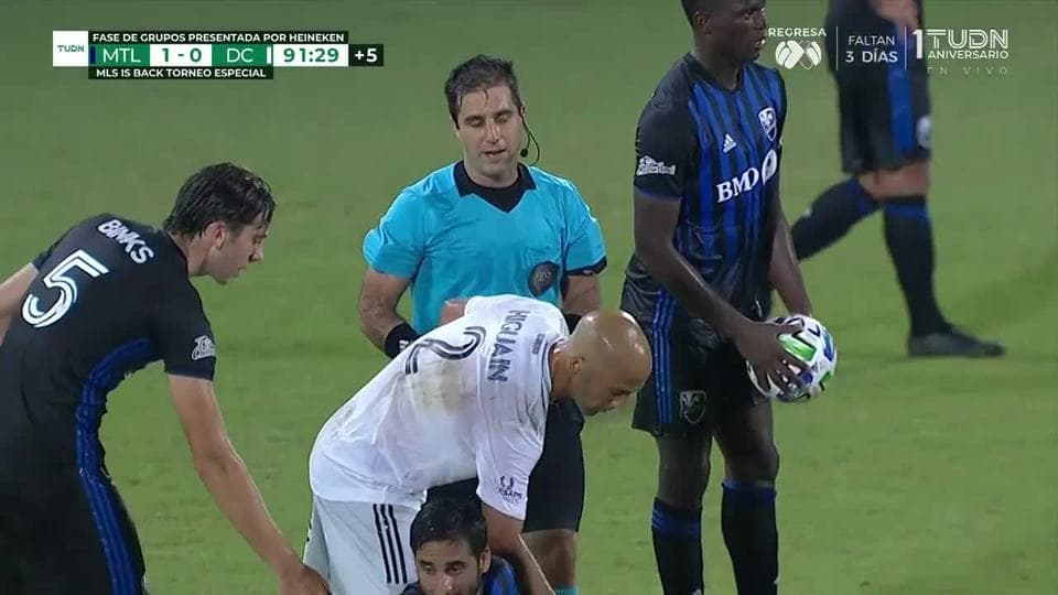 Tarjeta amarilla. El árbitro amonesta a Federico Higuaín de D.C. United on July 21, 2020