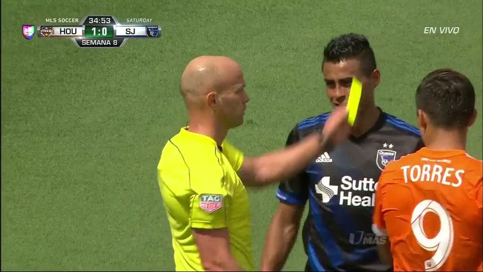 Tarjeta amarilla. El árbitro amonesta a Florian Jungwirth de San Jose Earthquakes