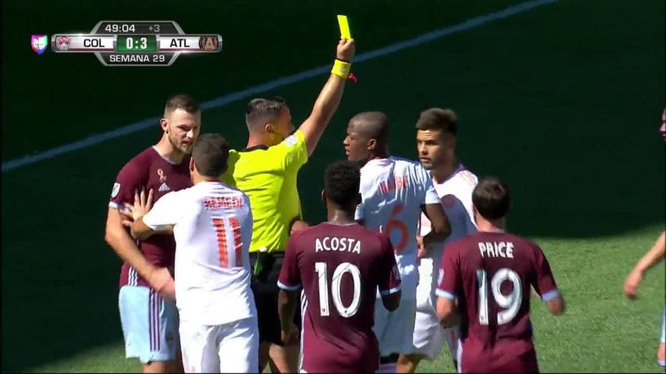 Tarjeta amarilla. El árbitro amonesta a Héctor Villalba de Atlanta United FC