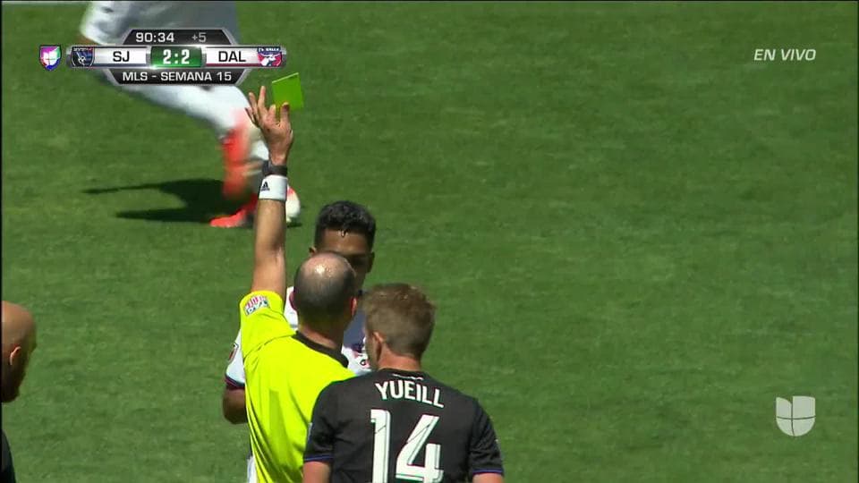 Tarjeta amarilla. El árbitro amonesta a Jesús Ferreira de FC Dallas
