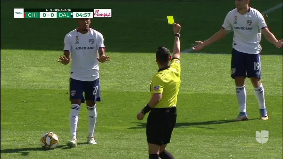 Tarjeta amarilla. El árbitro amonesta a Jesús Ferreira de FC Dallas
