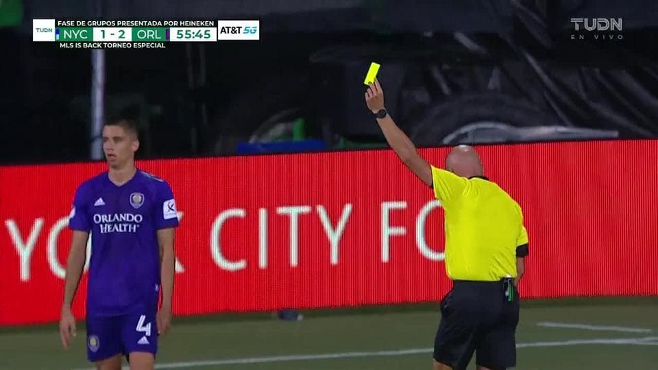 Tarjeta amarilla. El árbitro amonesta a João Moutinho de Orlando City SC on July 14, 2020