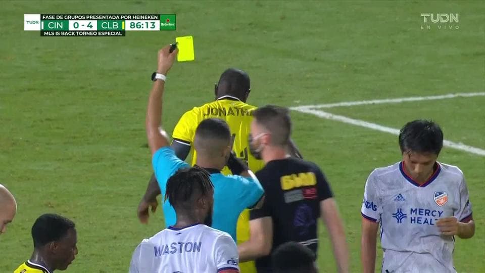 Tarjeta amarilla. El árbitro amonesta a Jonathan Mensah de Columbus Crew SC on July 11, 2020
