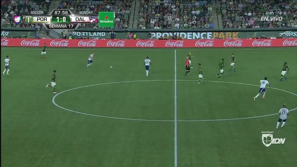 Tarjeta amarilla. El árbitro amonesta a Jorge Moreira de Portland Timbers