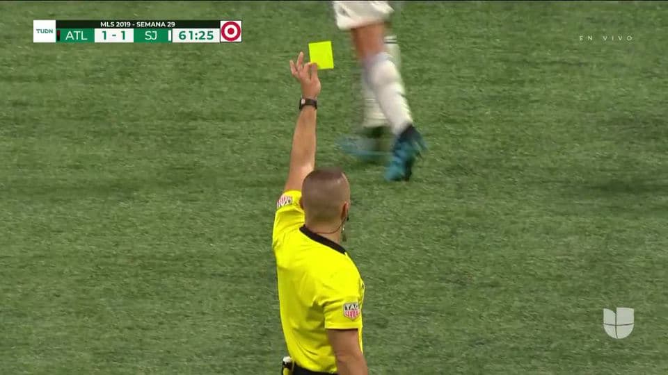 Tarjeta amarilla. El árbitro amonesta a Judson de San Jose Earthquakes