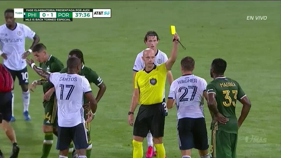 Tarjeta amarilla. El árbitro amonesta a Kai Wagner de Philadelphia Union