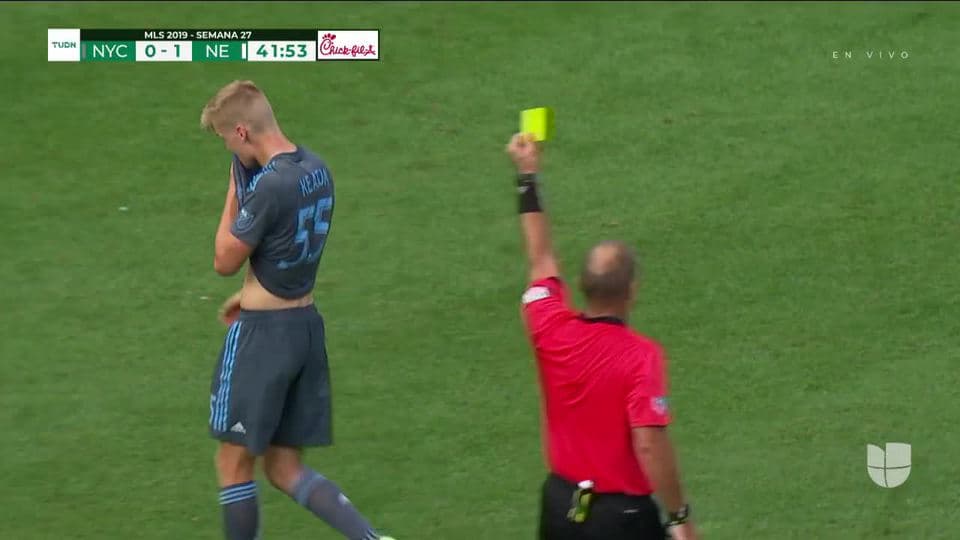 Tarjeta amarilla. El árbitro amonesta a Keaton Parks de New York City FC on September 7, 2019