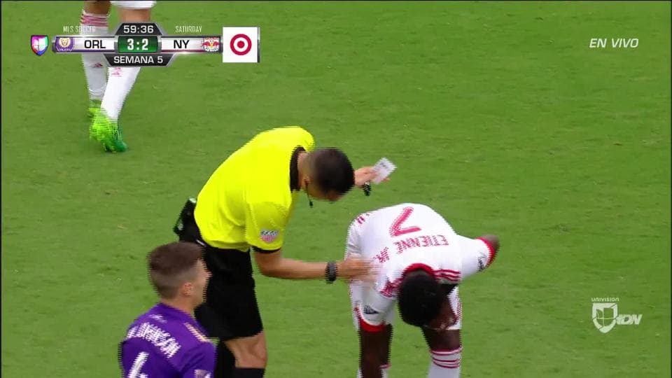 Tarjeta amarilla. El árbitro amonesta a Lamine Sané de Orlando City SC