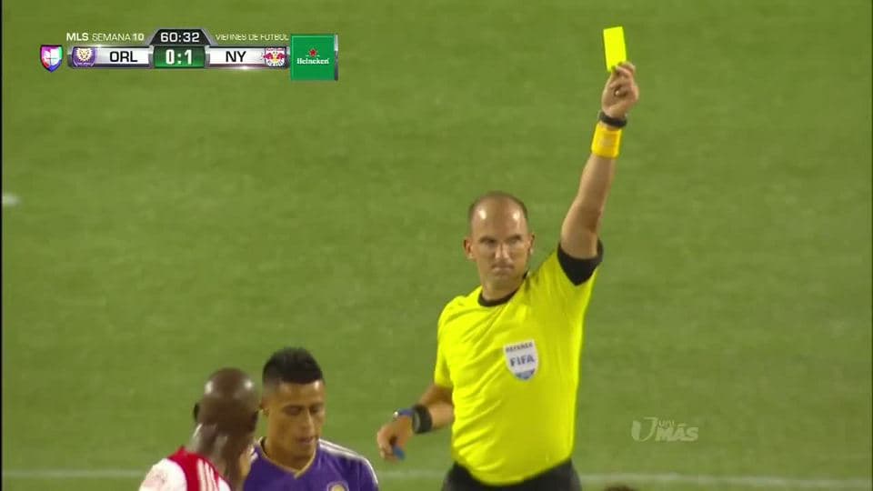 Tarjeta amarilla. El árbitro amonesta a Lloyd Sam de New York Red Bulls