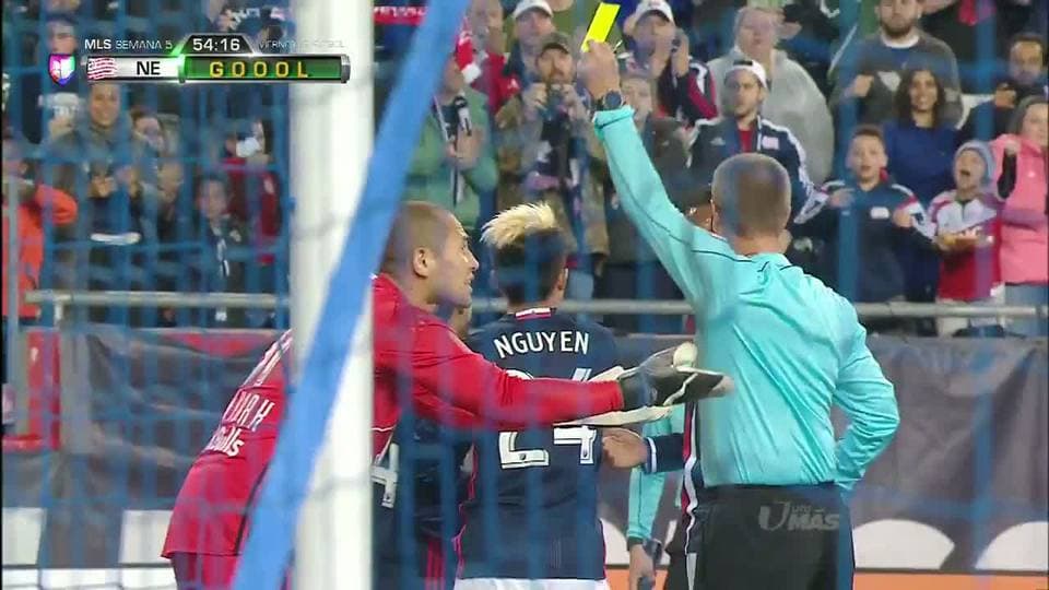 Tarjeta amarilla. El árbitro amonesta a Luis Robles de New York Red Bulls