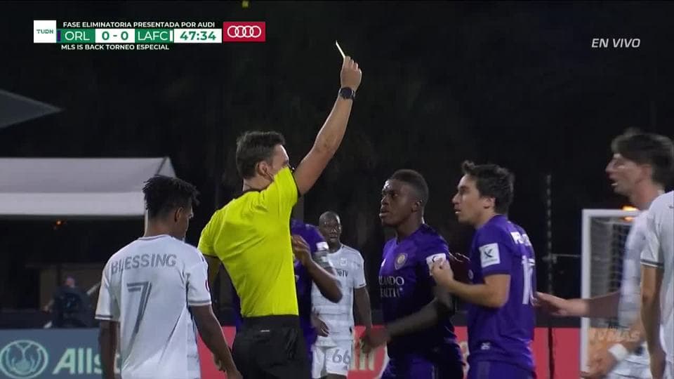 Tarjeta amarilla. El árbitro amonesta a Mauricio Pereyra de Orlando City SC on July 31, 2020