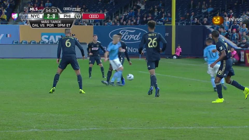 Tarjeta amarilla. El árbitro amonesta a Maxime Chanot de New York City FC