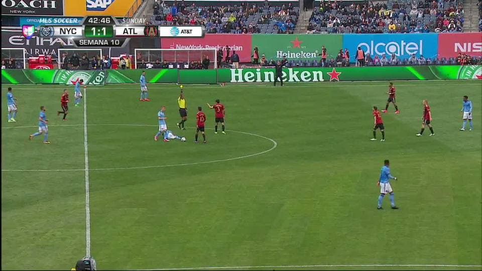 Tarjeta amarilla. El árbitro amonesta a Michael Parkhurst de Atlanta United FC on May 7, 2017