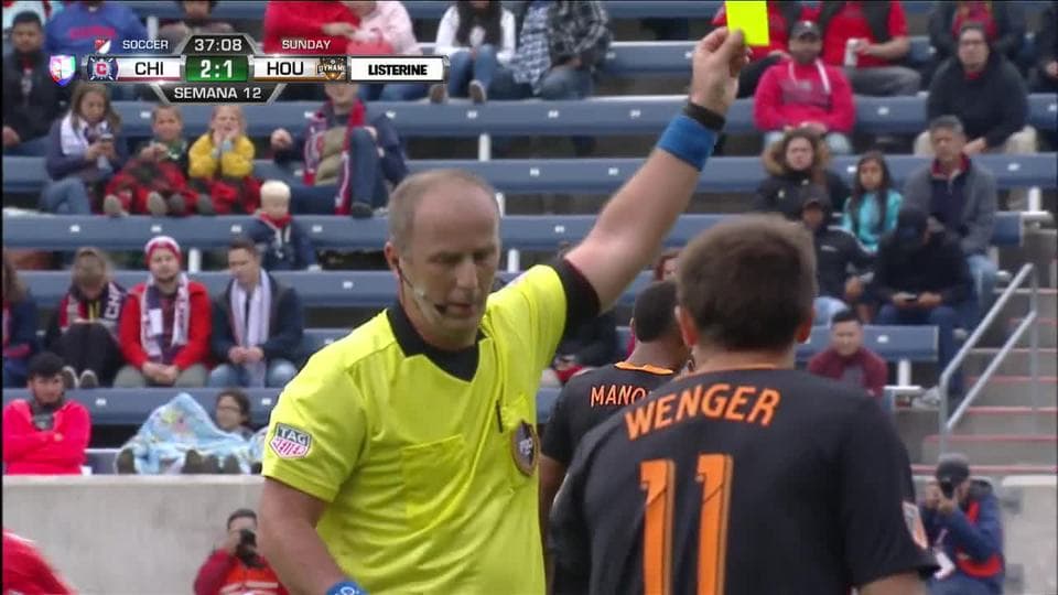 Tarjeta amarilla. El árbitro amonesta a Mohammed Adams de Chicago Fire
