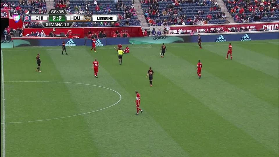 Tarjeta amarilla. El árbitro amonesta a Óscar Boniek García de Houston Dynamo