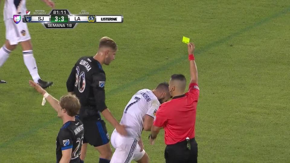 Tarjeta amarilla. El árbitro amonesta a Romain Alessandrini de LA Galaxy