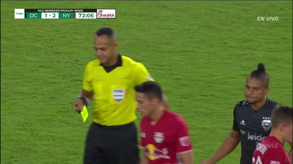 Tarjeta amarilla. El árbitro amonesta a Quincy Amarikwa de D.C. United