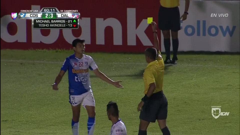 Tarjeta amarilla. El árbitro amonesta a René Mauricio Maltes Obregón de Suchitepéquez
