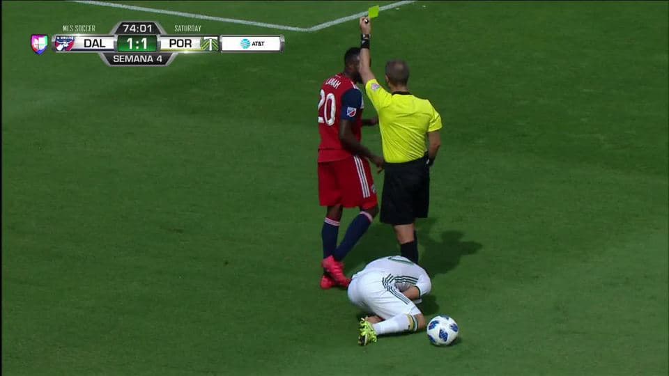 Tarjeta amarilla. El árbitro amonesta a Roland Lamah de FC Dallas