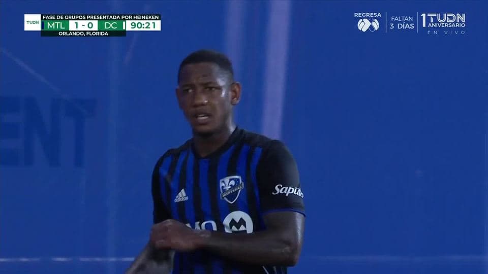 Tarjeta amarilla. El árbitro amonesta a Romell Quioto de Montreal Impact on July 21, 2020