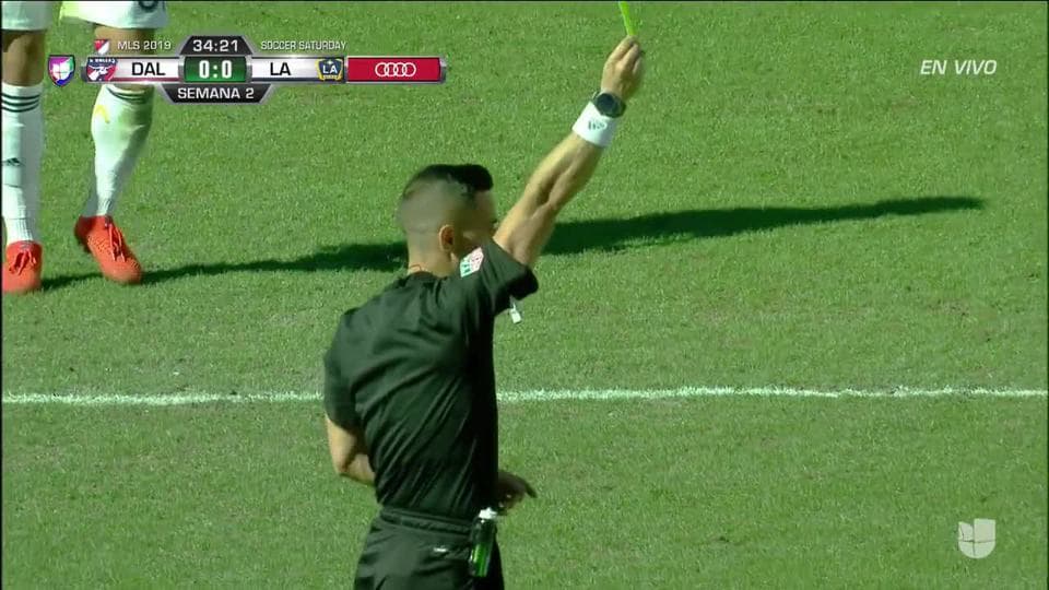 Tarjeta amarilla. El árbitro amonesta a Sebastian Lletget de LA Galaxy on March 9, 2019