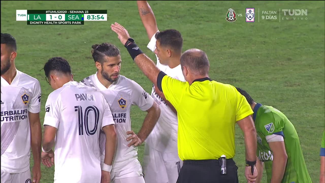 Tarjeta amarilla. El árbitro amonesta a Sebastian Lletget de LA Galaxy.