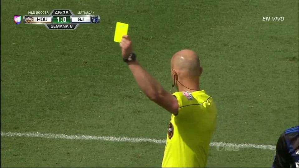 Tarjeta amarilla. El árbitro amonesta a Shaun Francis de San Jose Earthquakes on April 22, 2017