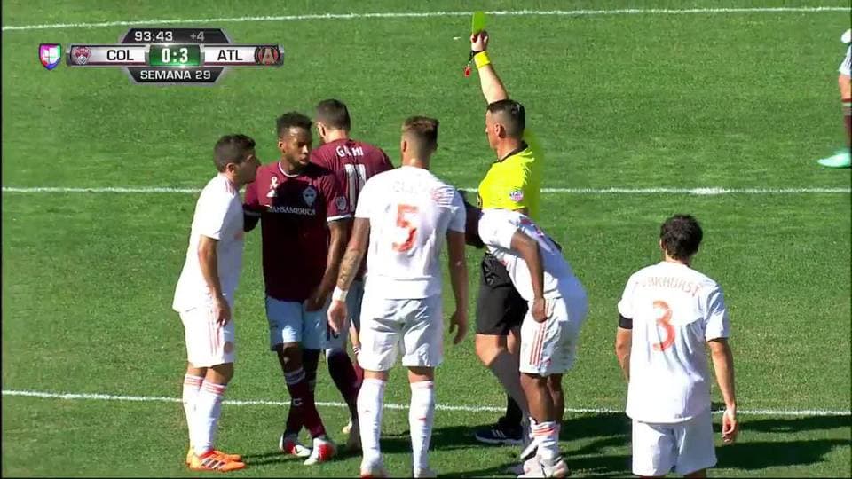 Tarjeta amarilla. El árbitro amonesta a Shkëlzen Gashi de Colorado Rapids