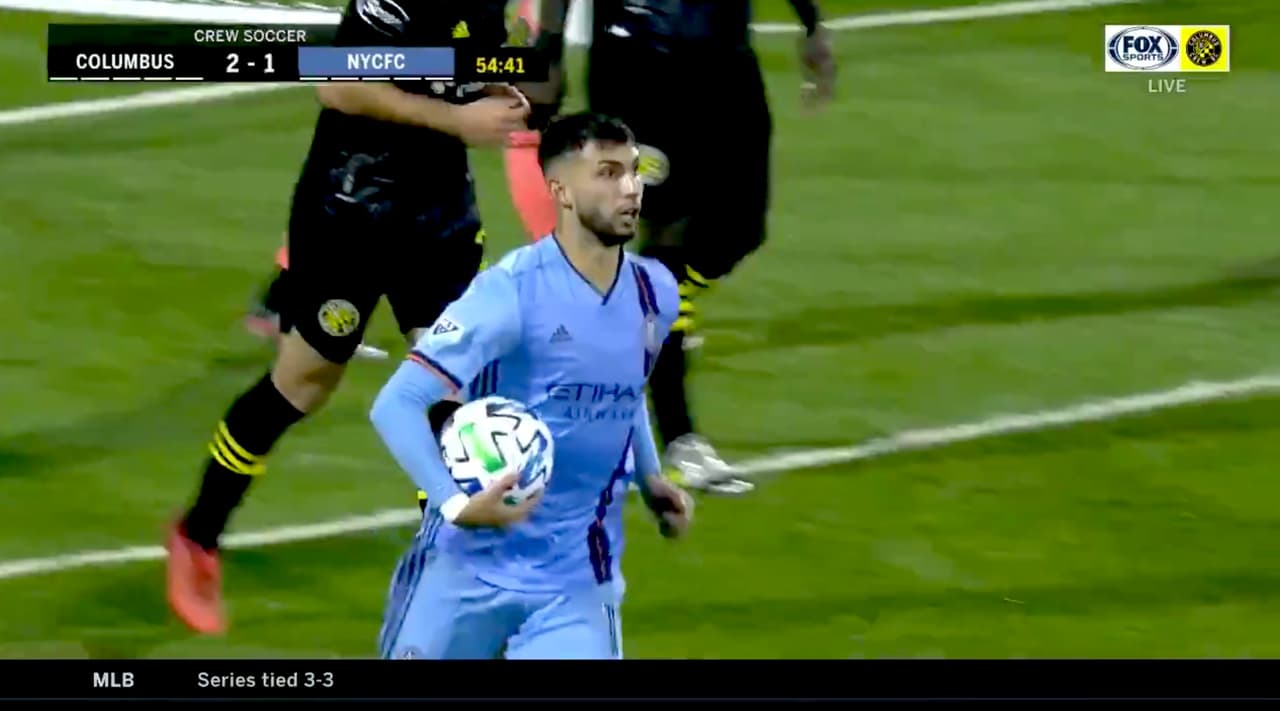El delantero de New York City FC, Valentín Castellanos, ganó la marca defensiva y con un derechazo acortó el marcador 2-1 ante Columbus Crew al minuto 55.