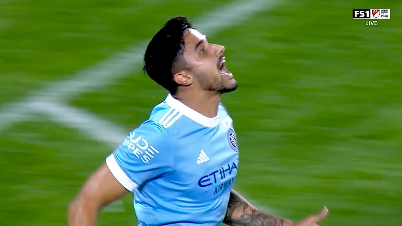 New York City FC estuvo muy cerca de adelantarse en el marcador, pero el larguero le negó la anotación al brasileño Thiago Martins.