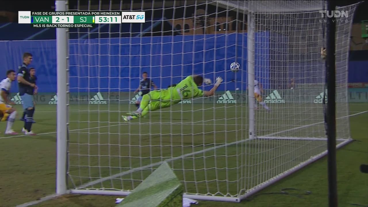 El portero del Vancouver Whitecaps frenó el potente disparo de Valeri Qazaishvili, volante extremo de los Earthquakes.