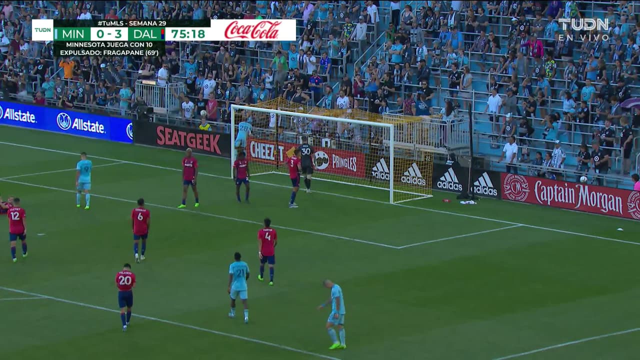 Tiro atajado Por arriba en el centro del arco. Alan Benítez (Minnesota United FC) Disparo con la derecha desde fuera del área. Asistencia de Wil Trapp con un pase de cabeza.