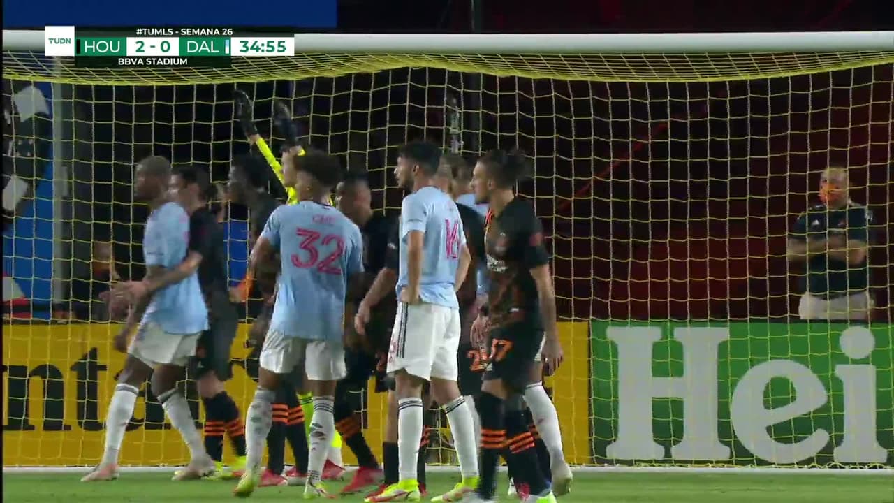 Tiro atajado raso al centro del arco. Brandon Servania (FC Dallas) Disparo con la derecha desde fuera del área. Asistencia de Jesús Ferreira.