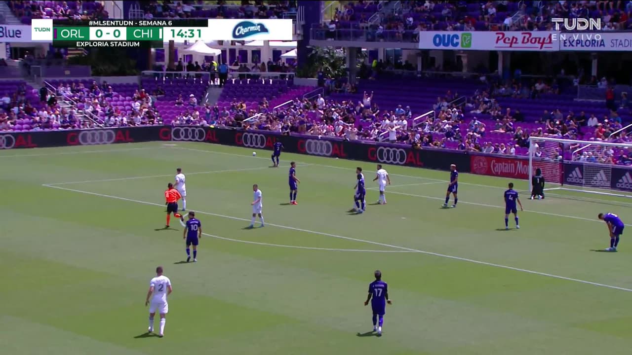 Tiro atajado por abajo a la izquierda. Brian Gutierrez (Chicago Fire) zurdazo desde el centro del área. Asistencia de Kacper Przybylko con un centro al área.