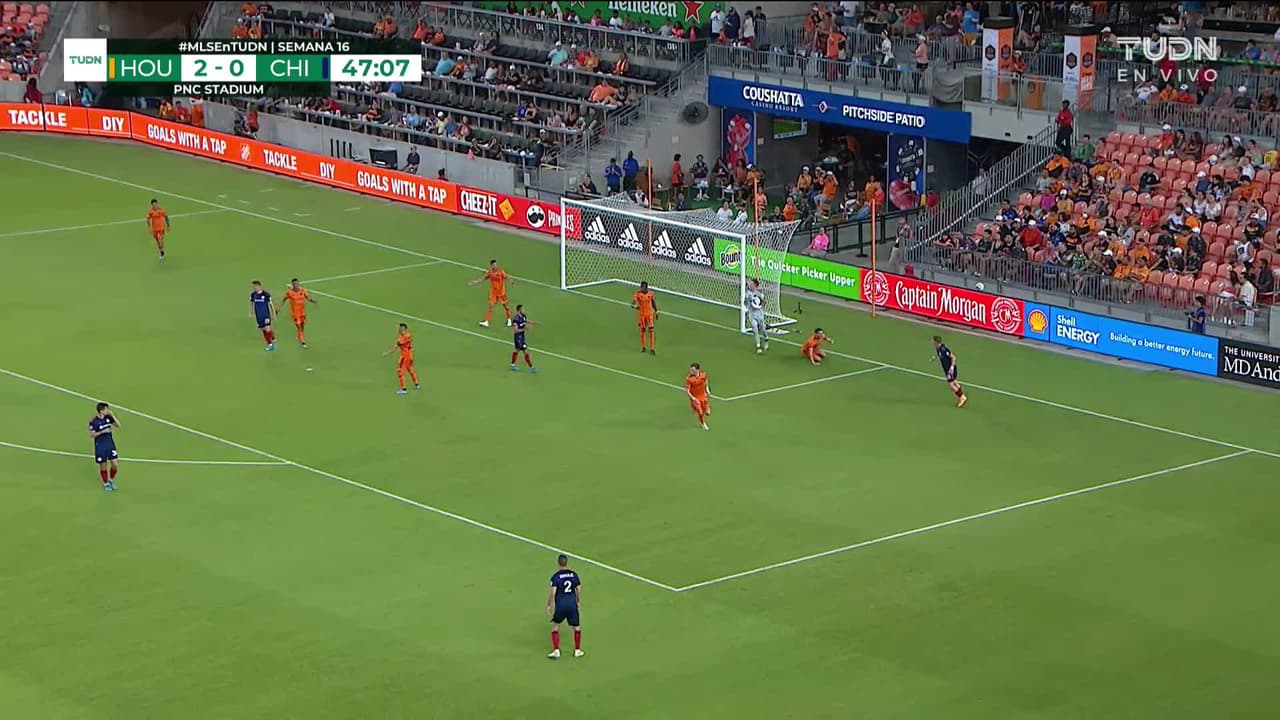 Tiro atajado. Chris Mueller (Chicago Fire) disparo de cabeza a quemarropa desde el lado derecho.