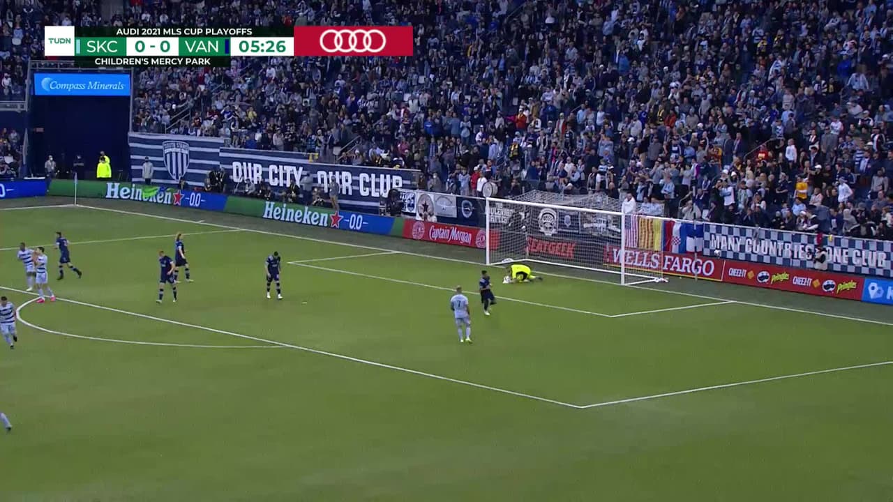 Tiro atajado raso al centro del arco. Dániel Sallói (Sporting Kansas City) Disparo con la derecha desde el centro del área. Asistencia de Khiry Shelton.