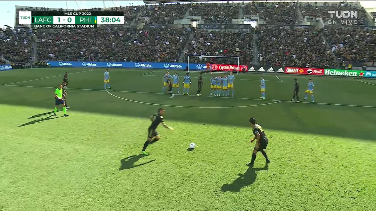 Tiro atajado. Diego Palacios (Los Angeles Football Club) zurdazo desde el centro del área.