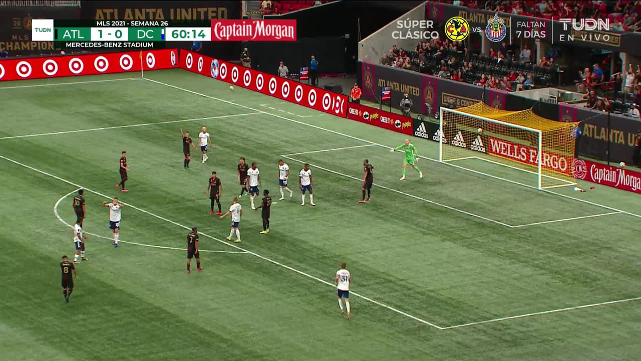 Remate parado a la escuadra izquierda. Edison Flores (DC United) remate con la izquierda desde fuera del área.
