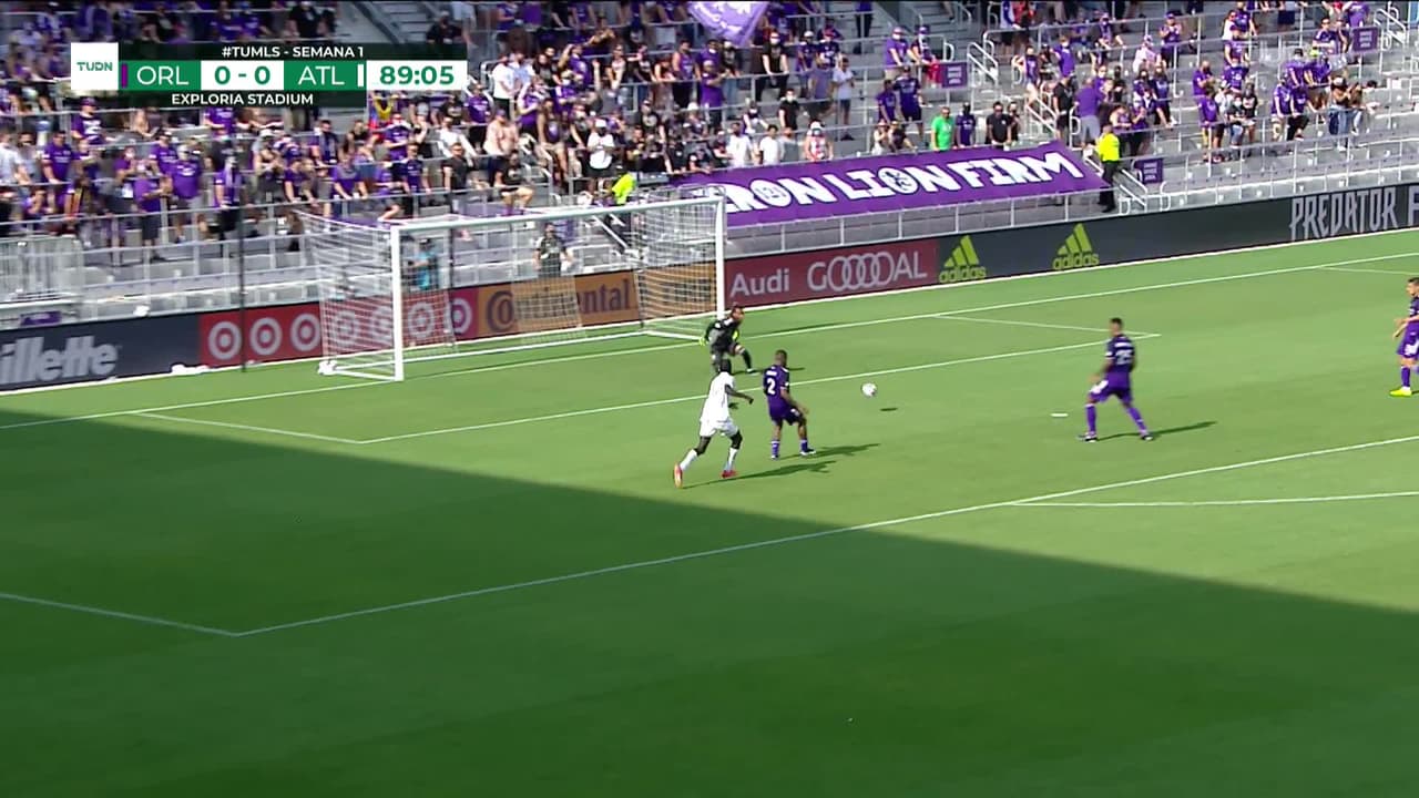 Tiro atajado. Franco Ibarra (Atlanta United FC) Disparo con la derecha desde fuera del área.